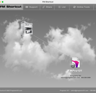 FM Shortcut is a small desktop launcher designed to help users quickly open local and remote files without the need to remember or enter a server IP address, hosted file name or even login credentials. FM Shortcut is an indispensable tool for opening hosted files and provides a better solution to FileMaker's desktop alias.